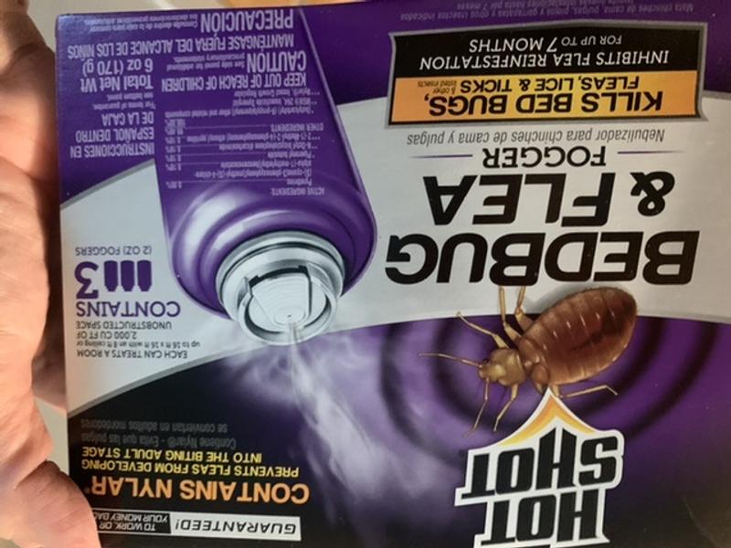 Hot Shot Bed Bug Fogger. These small 18 inch wingless insects generally spread by head-to-head contact or sharing hats or hairbrushes. The pesticides released do not penetrate the carpets or other fibers where the flea eggs and larvae are likely to be hiding.